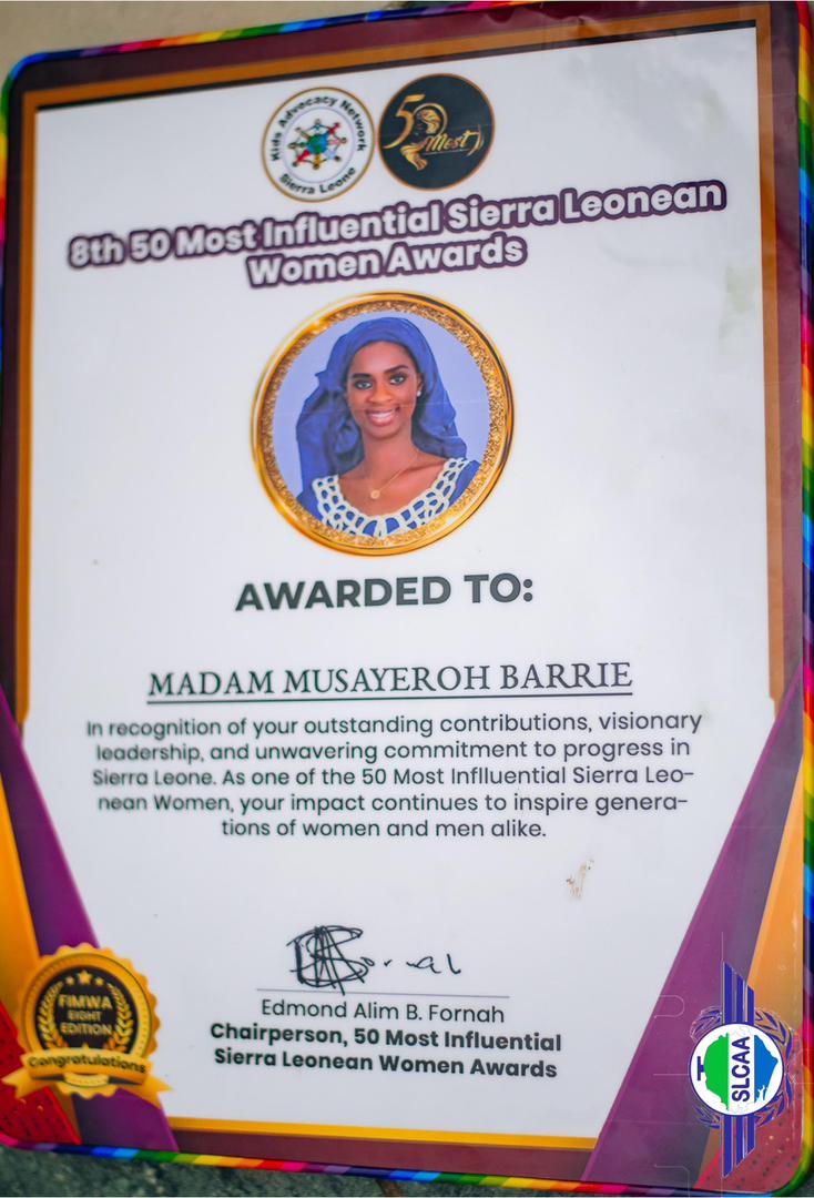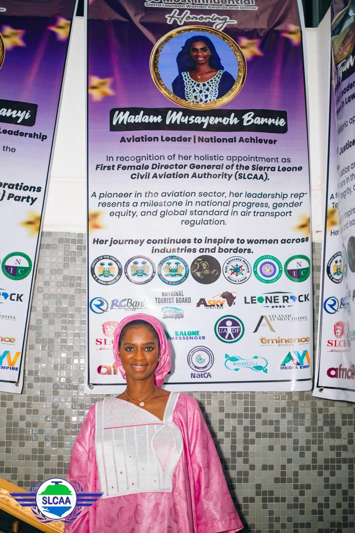 Freetown, Sierra Leone – The Sierra Leone Civil Aviation Authority (SLCAA) is proud to announce that its Director General Madam Musayeroh Barrie has been named among the 8th 50 Most Influential Sierra Leonean Women (50MIWL) of 2025.
